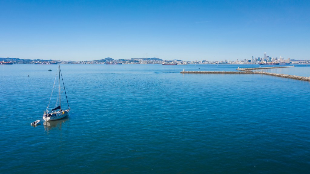 The biggest upgrade to our anchoring routine was the electric windlass we installed. We practiced setting and weighing the anchor via the anchor using the boat’s diesel’s idle forward and reverse to take up most of the strain. I watched the display for our Victron SmartShunt while the windlass was operating and the NEW alternator was able to keep up nicely with the power draw. All in all the power usage was about equal to our percolator-style coffee machine running through the inverter. Not bad. Two of our nights were spent at Clipper Cove (we were going to leave for the second night but it was just so nice there…) and the last just off the breakwater south of Alameda. I had always wanted to anchor there and it was nice. Glassy water in the morning and great views of San Francisco. I was able to take some neat photos of the USS Hornet nearby, the aircraft carrier responsible for picking up Neil Armstrong and the crew of the Apollo mission putting the first astronauts on the Moon. Way cool.