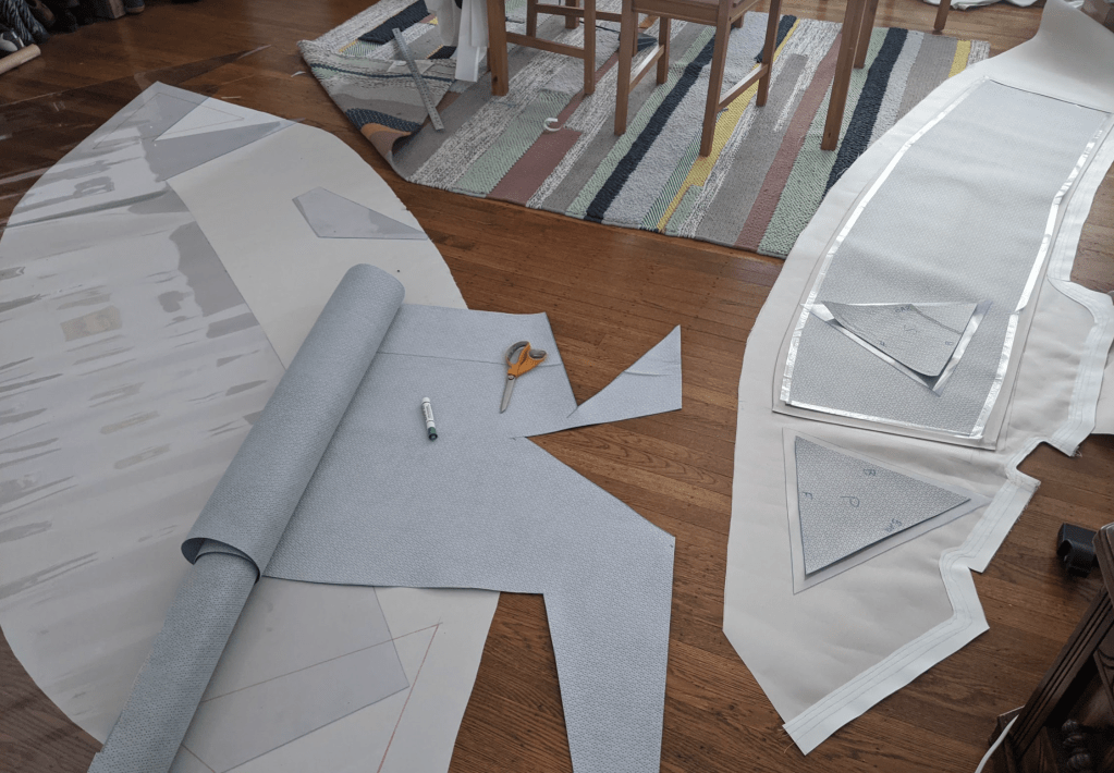The day we got back we started making the template for our new dodger. There are only so many times we can go out and sail with bare bows, I feel like it’s sacrilege or something and it’s quite chilly! Using 316 tube couplers I found on Defender, we were able to use our pre-existing dodger frame and add length to both bows, increasing its volume and using up some of the empty space above the old one and under the boom. Our new mainsail is cut in a way that it lifts the boom a couple inches when flying, so I know there won’t be interference with the new dodger’s height. Ash had previously purchased the Sailrite kit for far less than one would spend to have them professionally built. After her experience fabricating the sail pack, weather clothes, and grill cover, she was confident in our ability to put this one together.