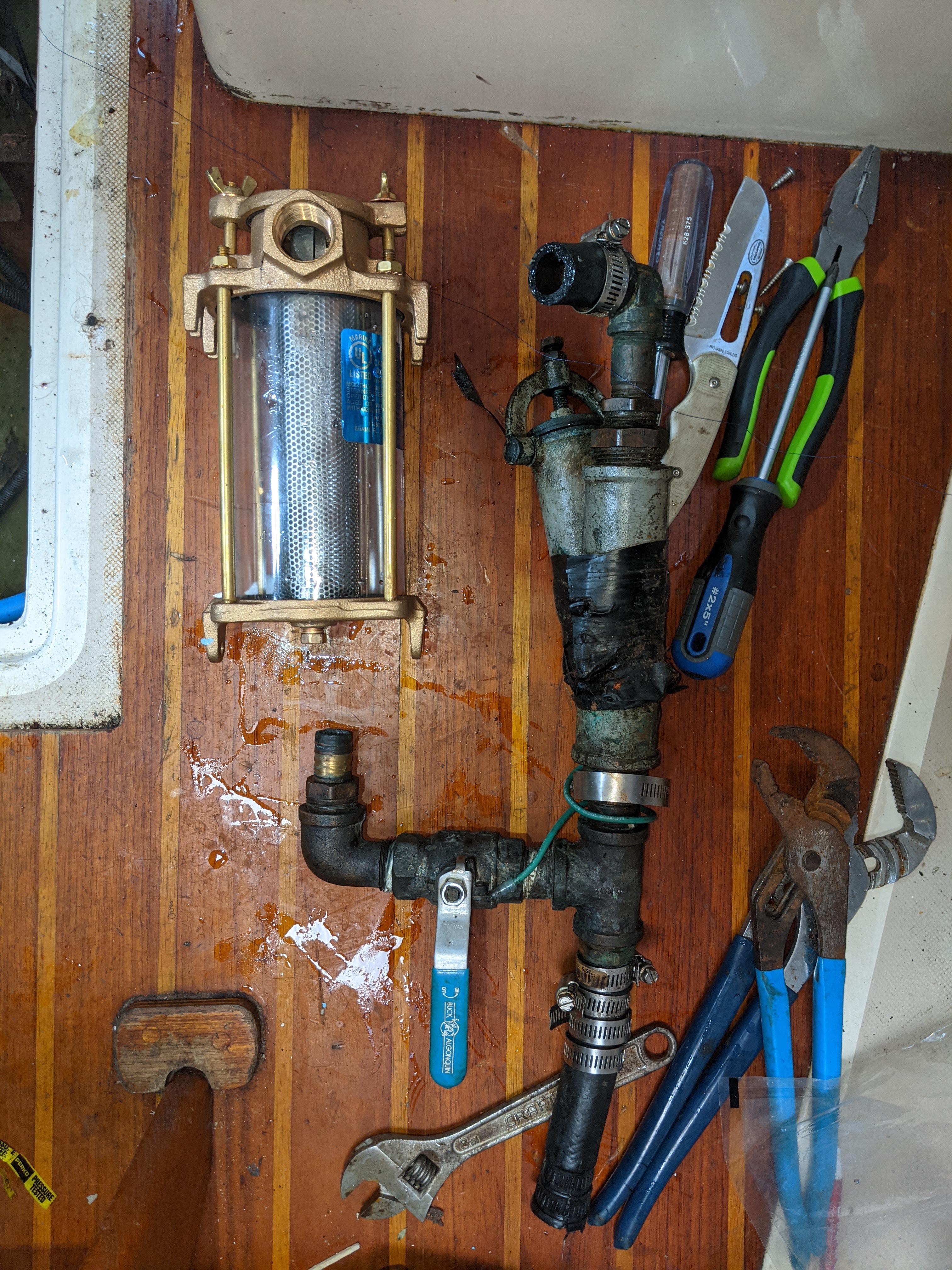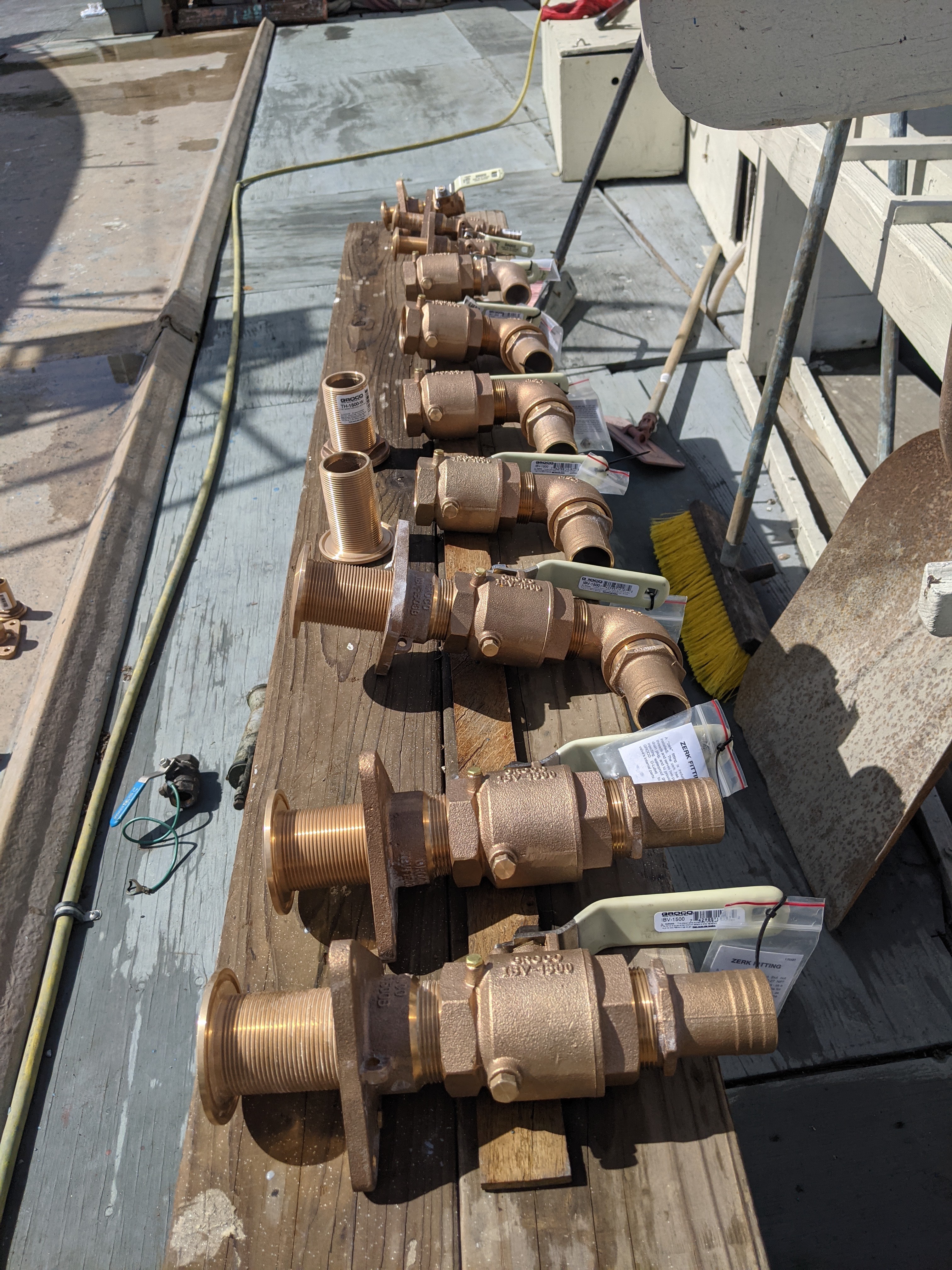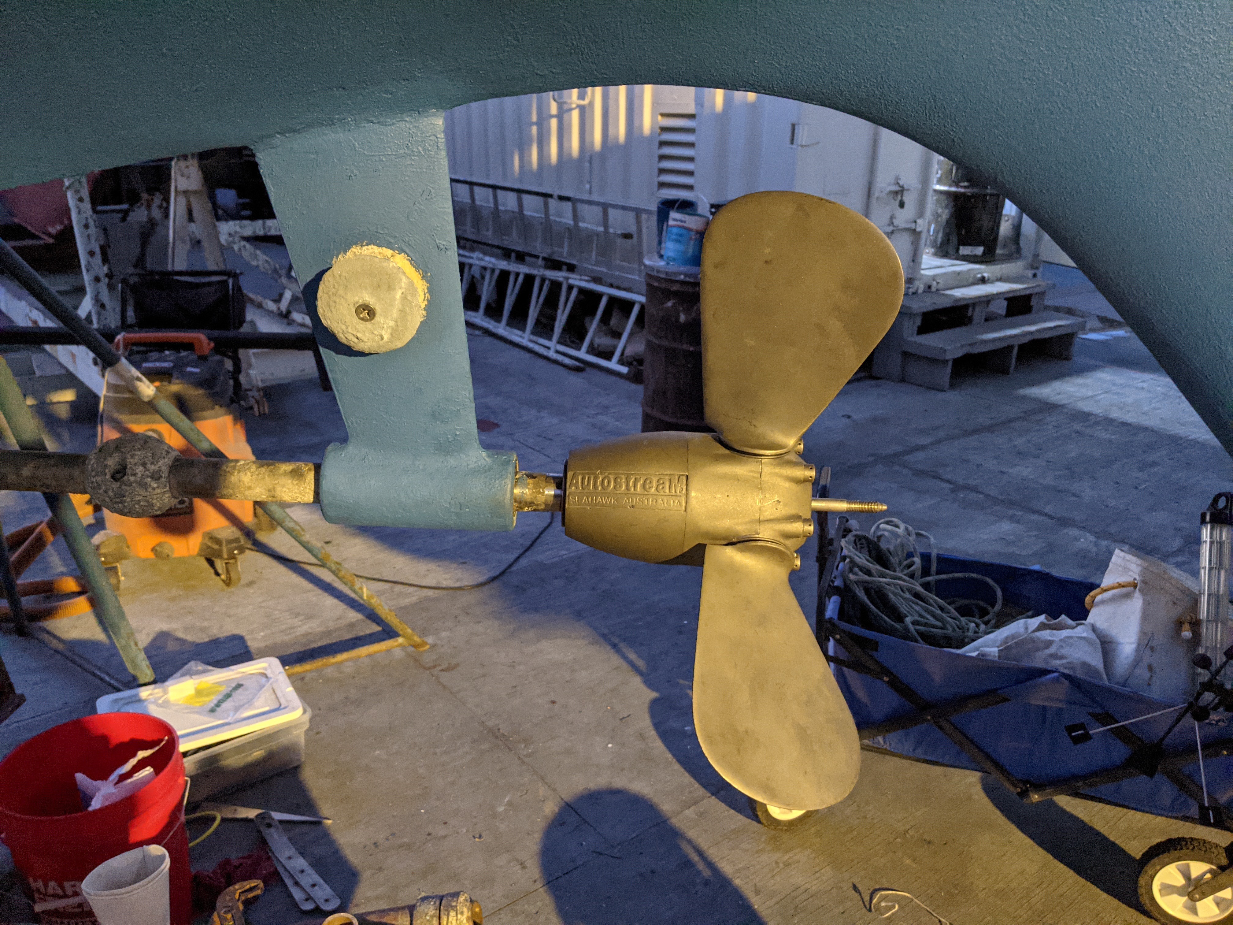 The haul-out was hard. Really hard. We set out with the primary objectives of replacing eleven thru hulls and eleven shrouds and stays to make up new standing rigging. We also wanted to switch out our bronze fixed prop for a new-to-us feathering prop, replace our engine raw water filter run, add a mount and hardware for an inner forestry and running back stays, and install new chain plates. And those were just the major projects! We had a handful of other bits and projects to keep us occupied. Each of these projects were a first for us, they were mechanically simple but made complicated due to exotic and tough materials, caustic chemical sealants and solvents, and at times extremely hard access points on the boat. At one point I had to assemble a thru hull and backing plate assembly through the boats starboard settee at the extreme length of my left arm’s reach, totally out of sight. It was so far in there that Ashley’s arm wasn’t long enough so I had to tap in. If you see me sometime ask me to act out the extreme acrobatics required just for that one job, it was nuts!