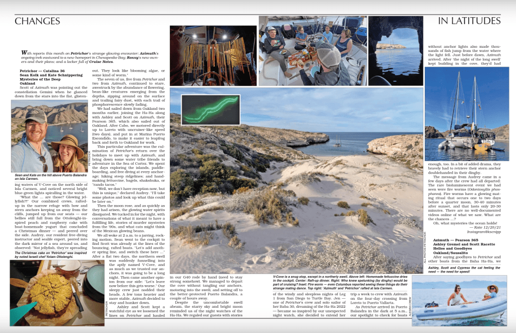 Some tales from our voyage are included in the March issue of Latitude 38 magazine! Click here to read all about it in the Changes in Latitude section (pages 86-89).