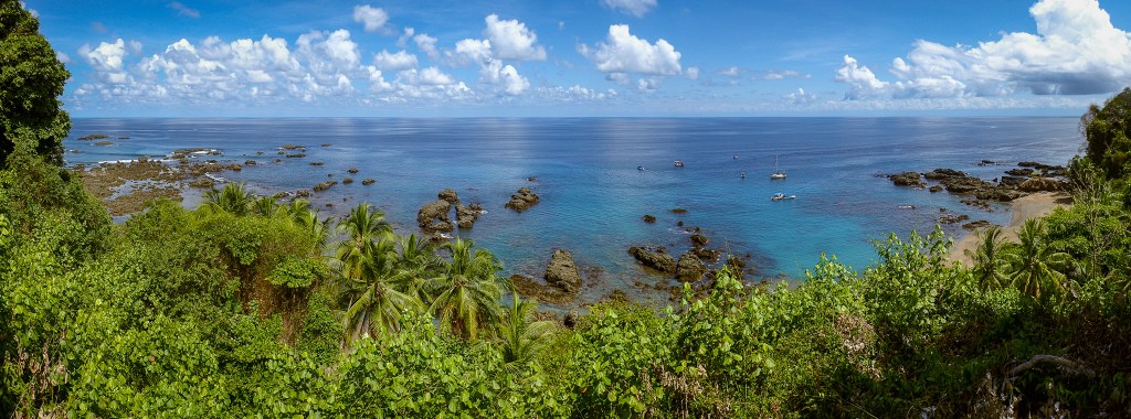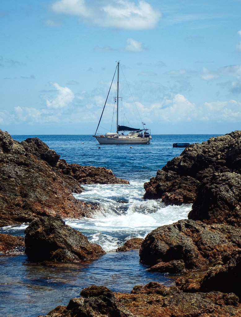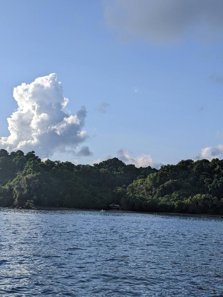 The miles were flowing quickly under the keel and we decided on a pitstop at Isla del Caño, a biological preserve 10 miles off Drake Bay. Our guidebooks and fellow boaters have waxed and waned poetically about this part of the earth, and we were happy for the detour. The island grew and grew on the horizon around sunrise. I drank coffee on my shift in the company of dolphins on both sides of the boat. We dropped anchor at this first jungle landscape and were soon joined by tourist boats. A few dozen snorkelers jumped in around us, and we giggled at being part of the landscape.
